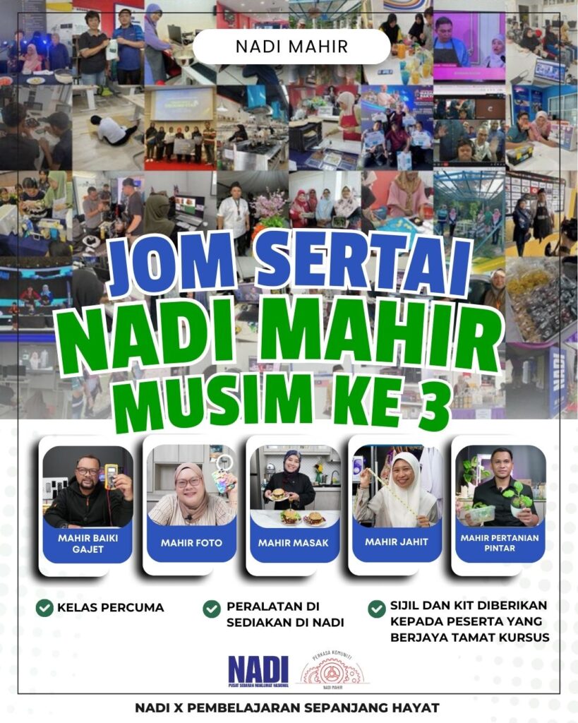 Untuk makluman, NADI X Mahir kini kembali untuk musim yang ketiga! Terdapat 5 kelas kemahiran iaitu: